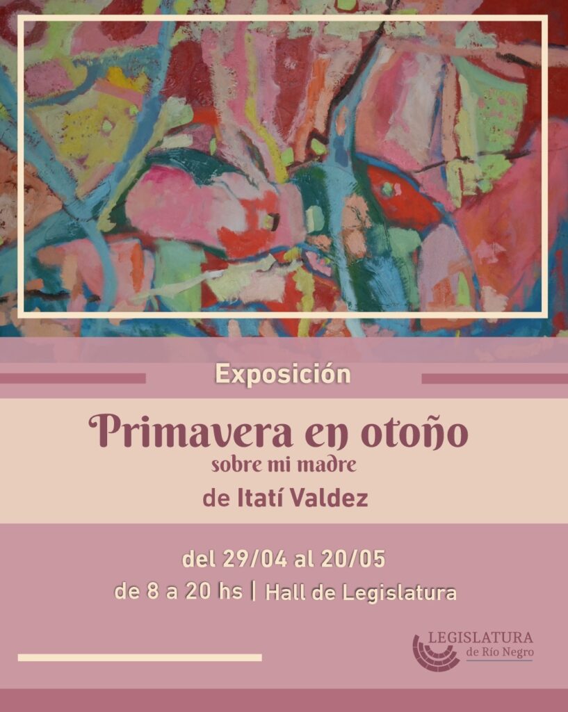 La Legislatura de Río Negro invita a la comunidad a recorrer la muestra “Primavera en otoño, sobre mi madre”, de la artista visual Itatí Valdez, que se exhibirá en el Hall del edificio legislativo en la ciudad de Viedma.